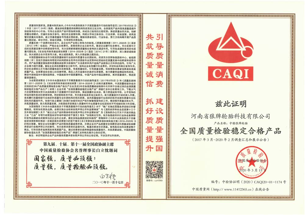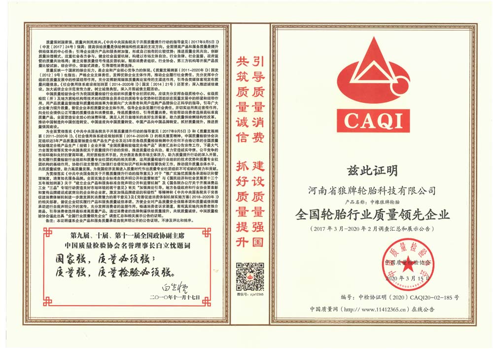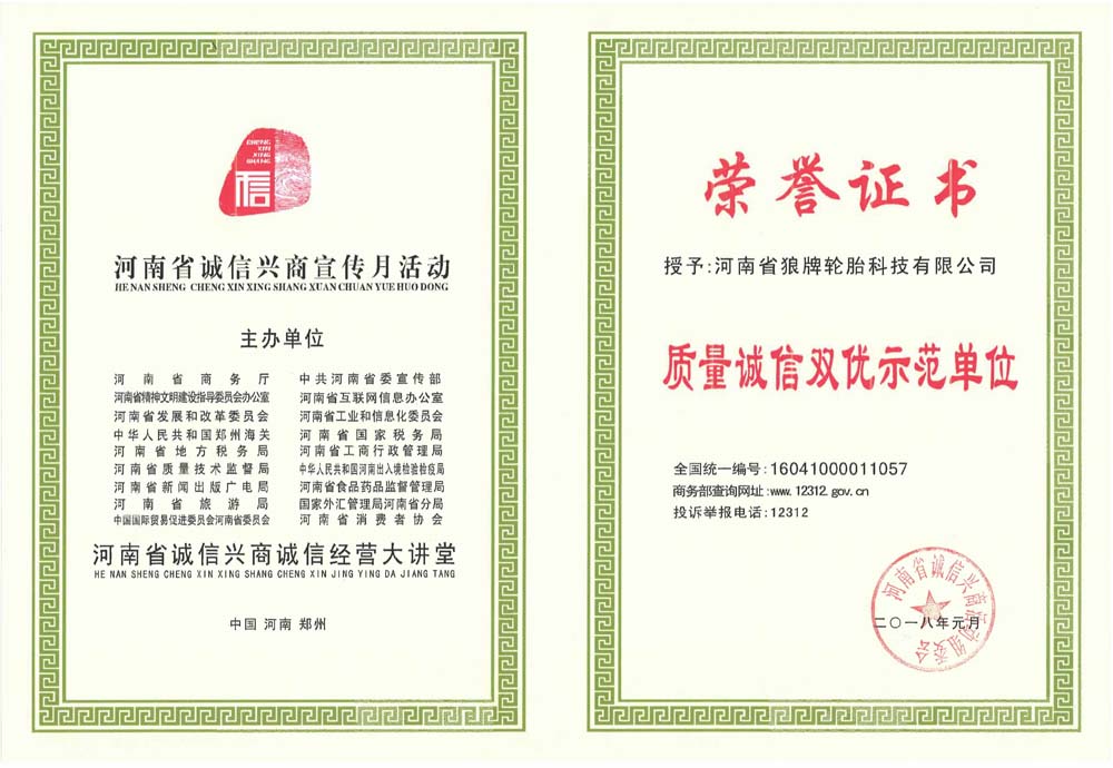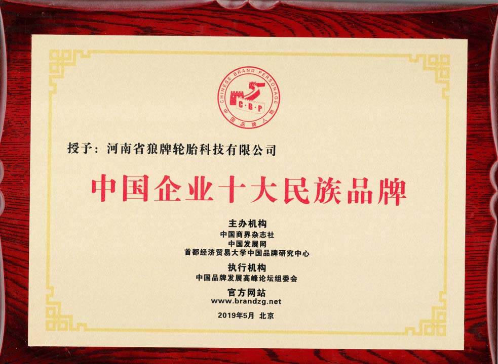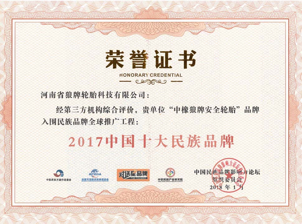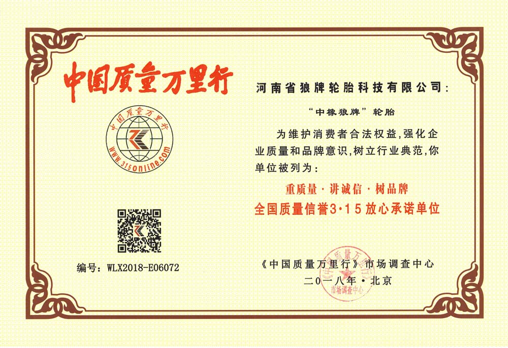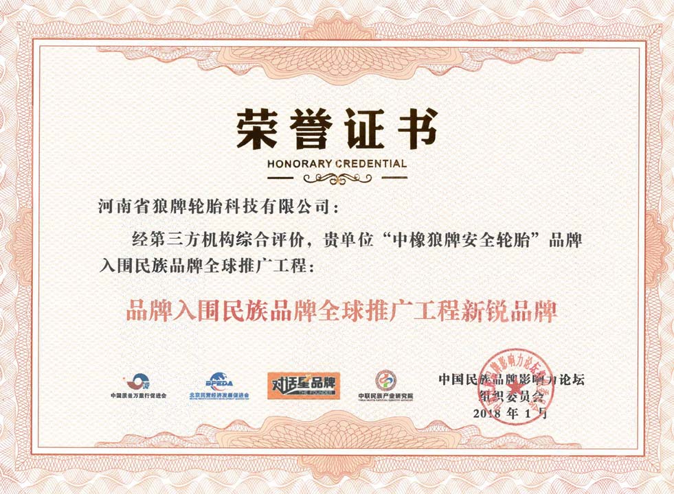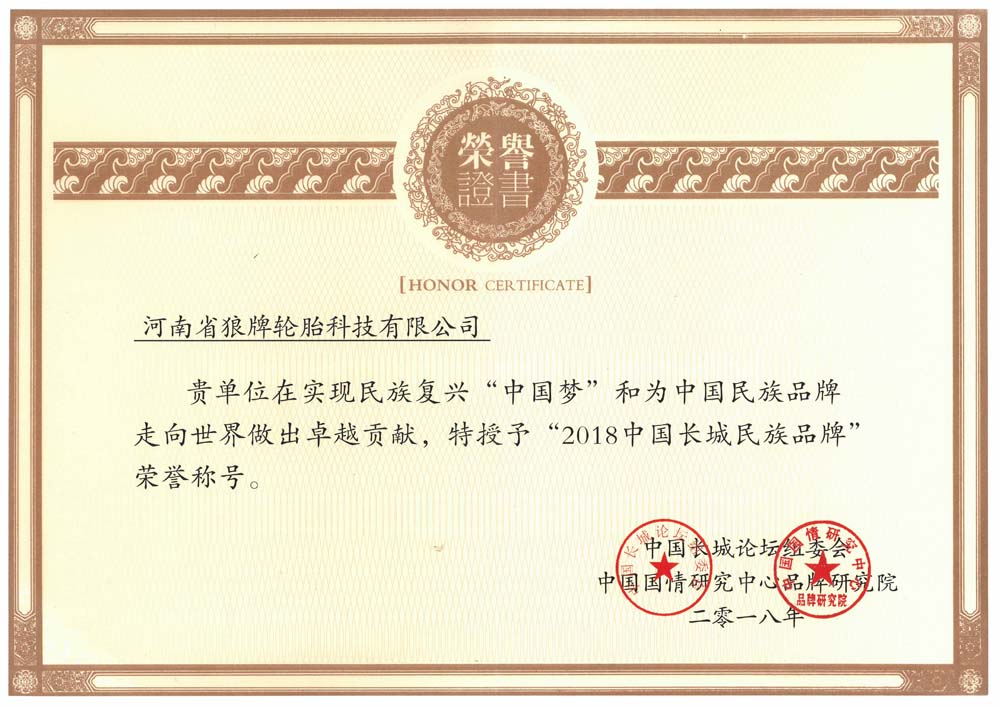 中橡狼牌輪胎品牌榮譽