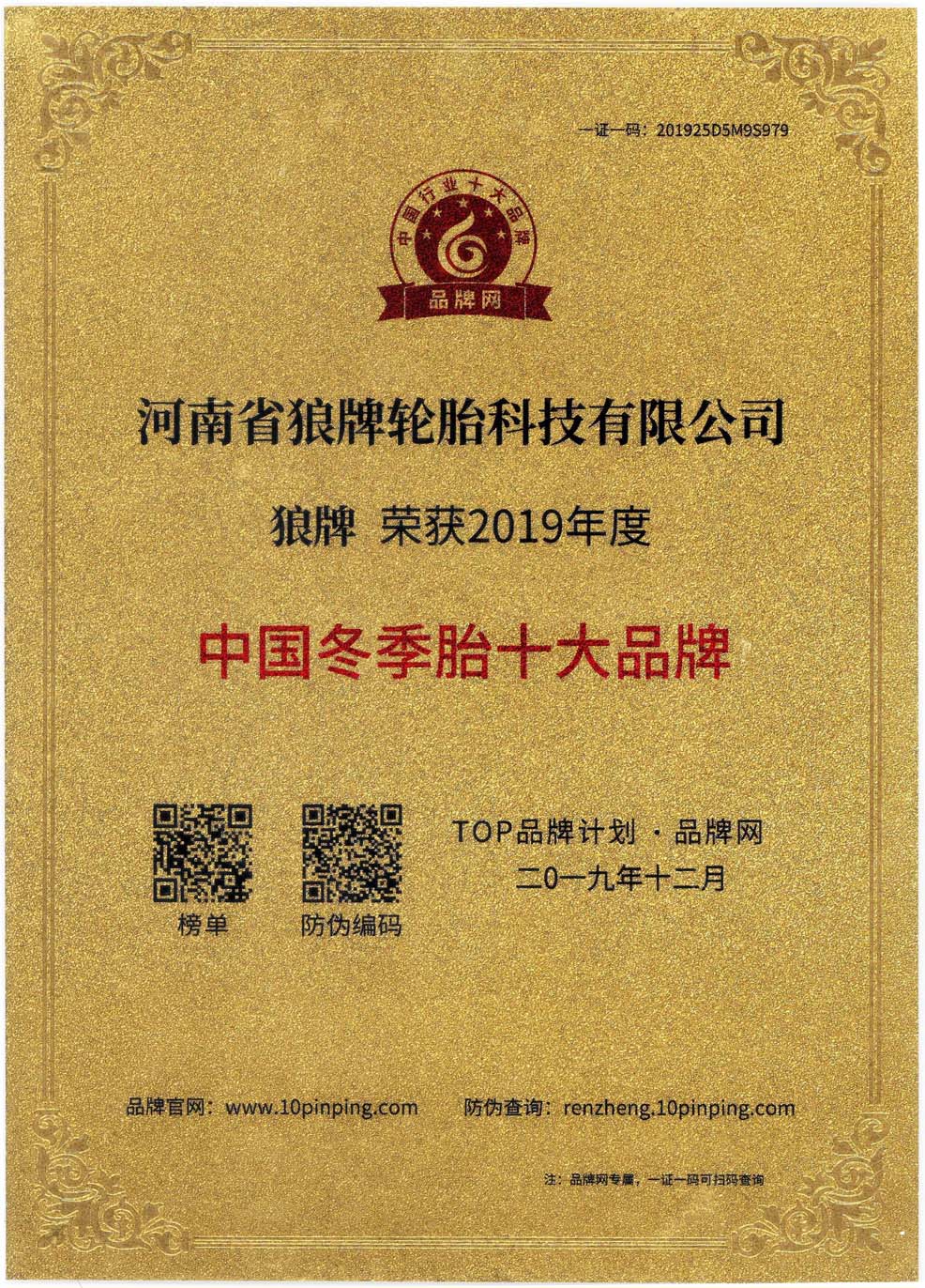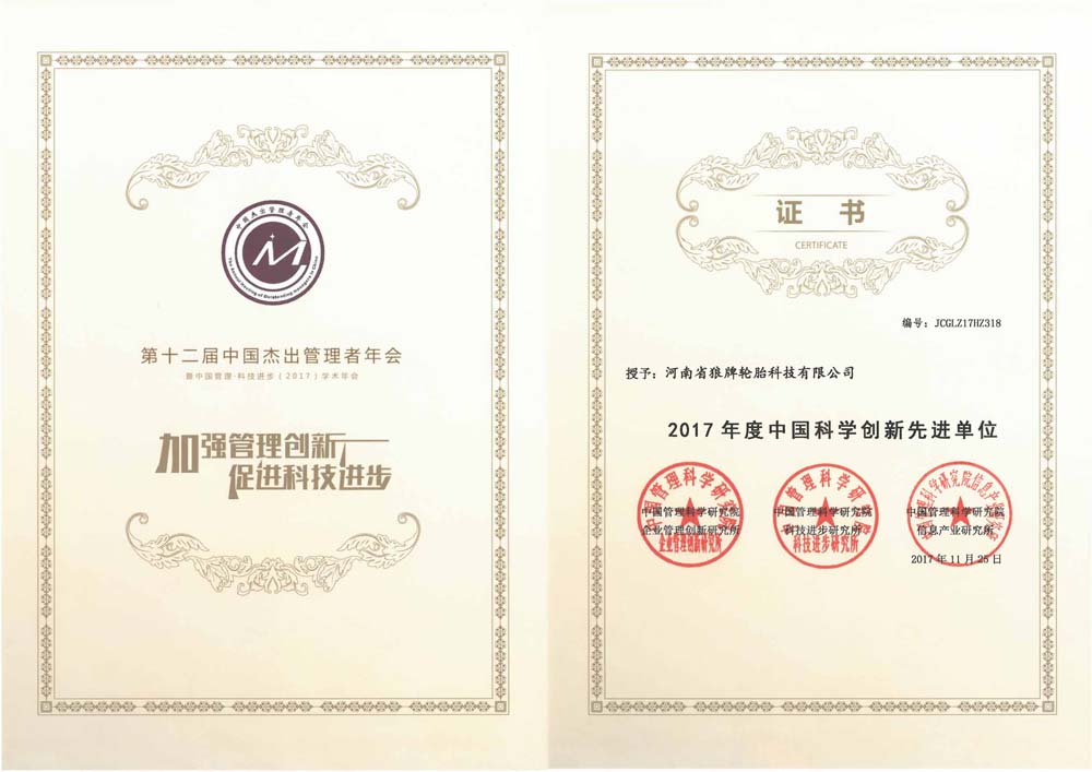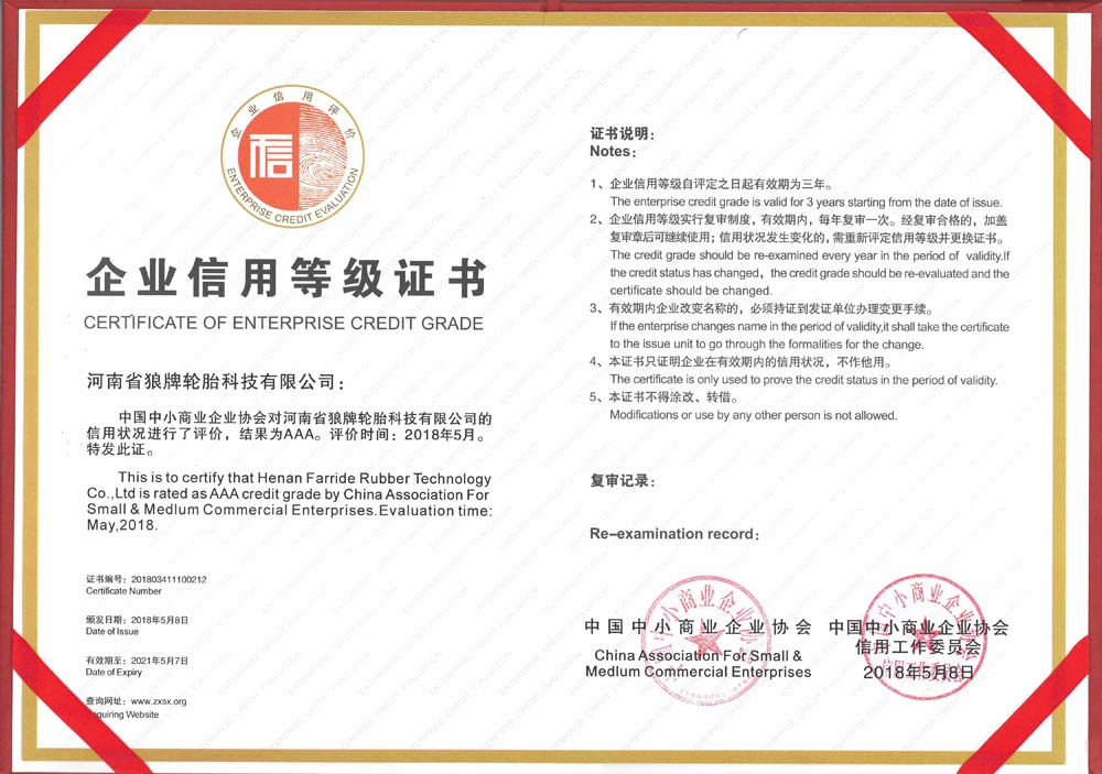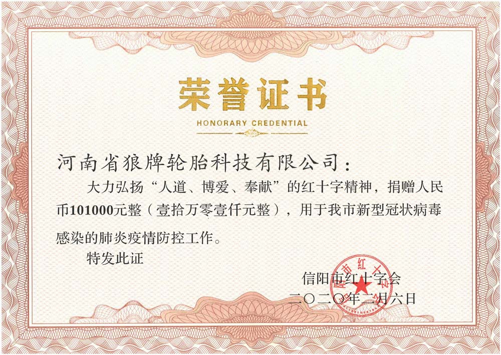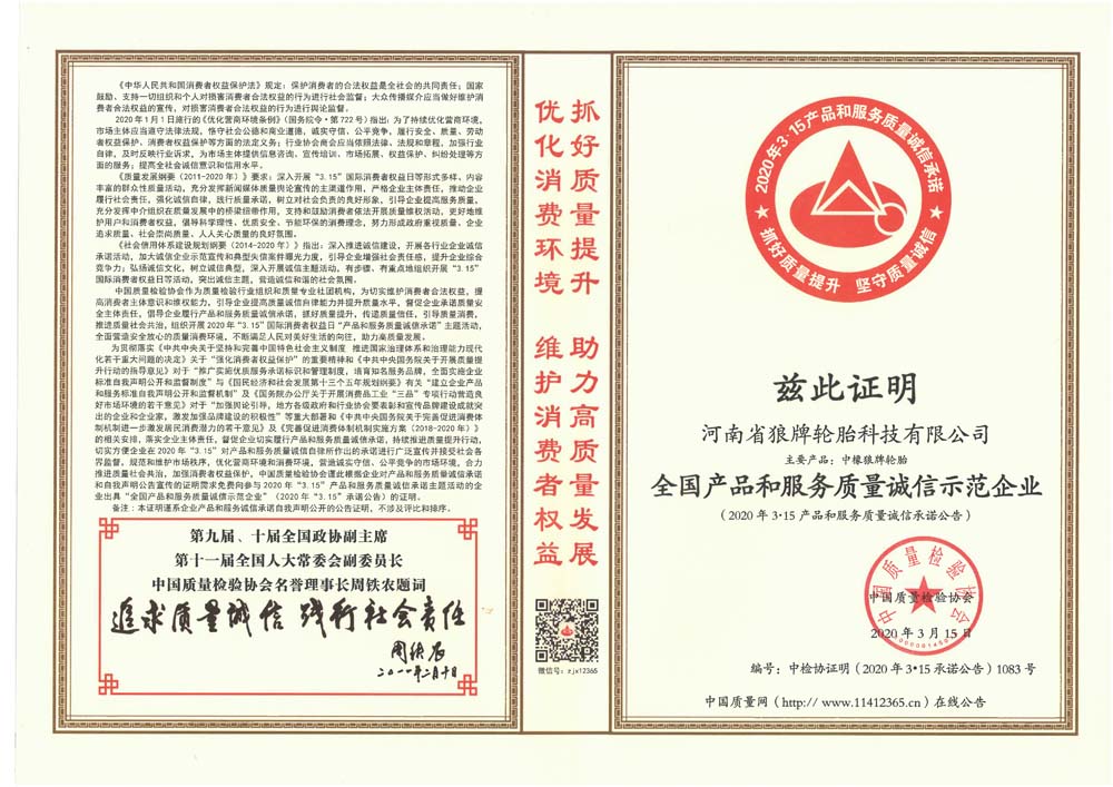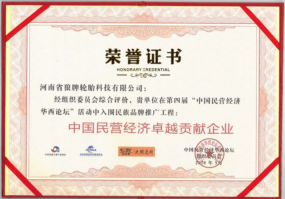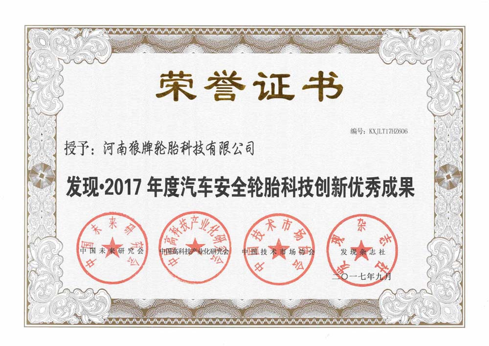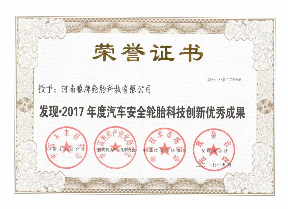 中橡狼牌輪胎品牌榮譽